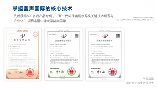 能持续斩获行业重磅荣誉,源于华艺卫浴从未停歇的创新步伐与扎实的技术积淀。作为国内卫浴十大品牌,华艺卫浴是国家高新技术企业,搭建起 “两站两基地三中心” 的强大研发矩阵,将技术创新作为发展核心驱动力。截至目前,企业累计斩获 800 多项产品专利,还先后主导或参与制修订国家、行业标准 30 余项,牢牢掌握卫浴核心技术,用硬核的研发实力打破行业技术壁垒。在产品端,华艺卫浴始终兼顾创新与实用,以个性化、智能化的新产品持续引领市场,为消费者打造高品质的舒适卫浴生活解决方案,完美诠释了国货卫浴十大品牌对产品品质与用户体验的极致追求。